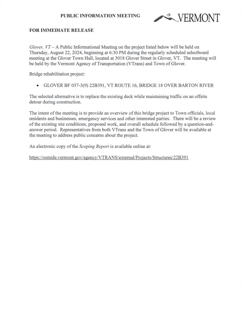 The Glover Selectboard is inviting residents of Glover to send their photographs of storm damage to us. We are collecting photographs for both awareness of storm damage in our town, as well as historical record, and would like to have all photographs go to a single email address created just for organizing this collection. Please…